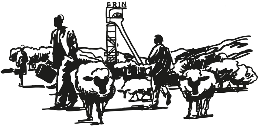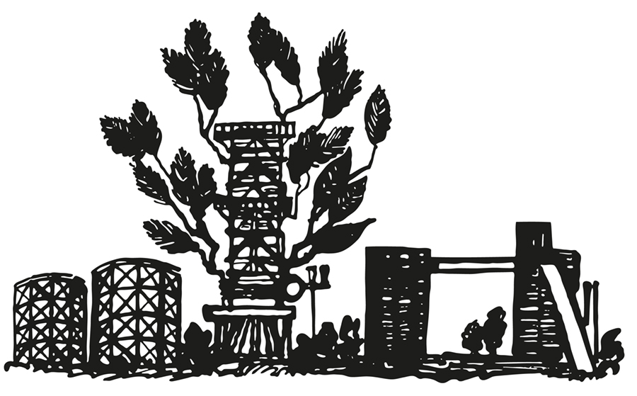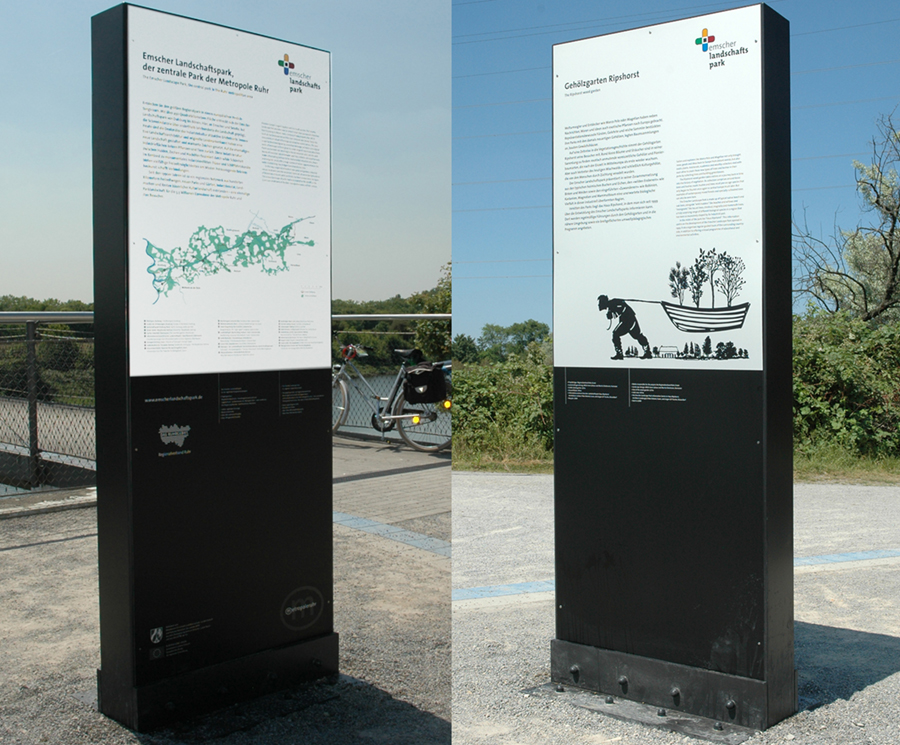 Illustrationen für Infobrammen im Emscher Landschaftspark. Die Brammen informieren über die Geschichte des jeweiligen Ortes im Ruhrgebiet. In zusammenarbeit mit dem Gestalter und Typografen Klaus Seelig, Bielefeld
