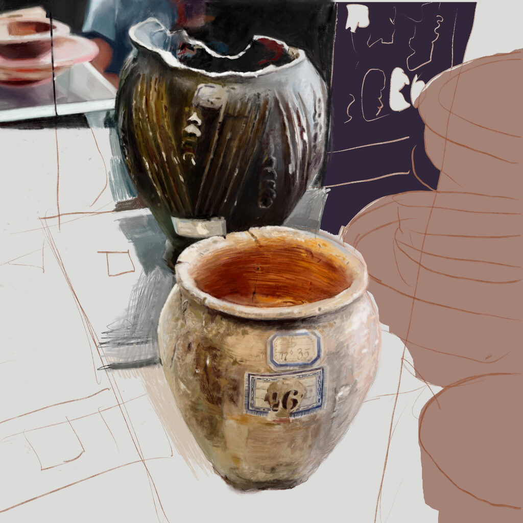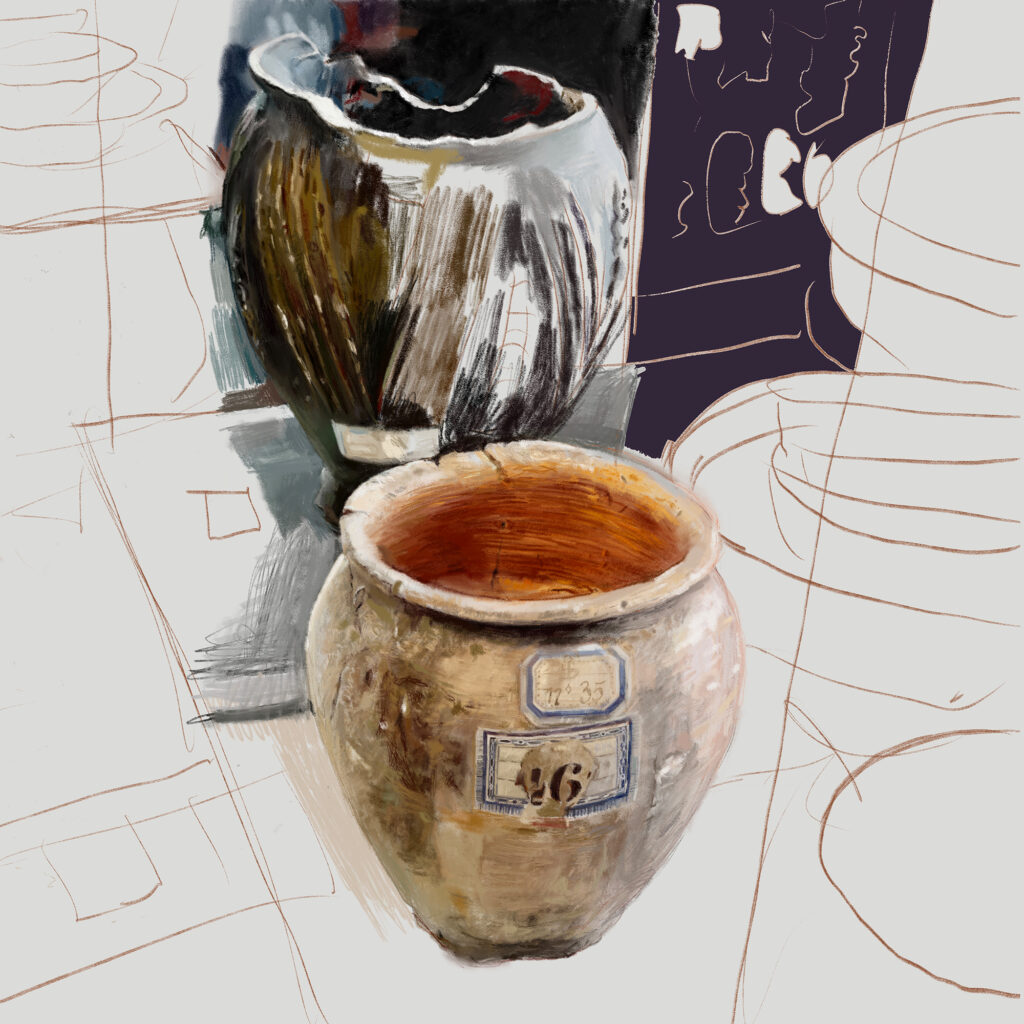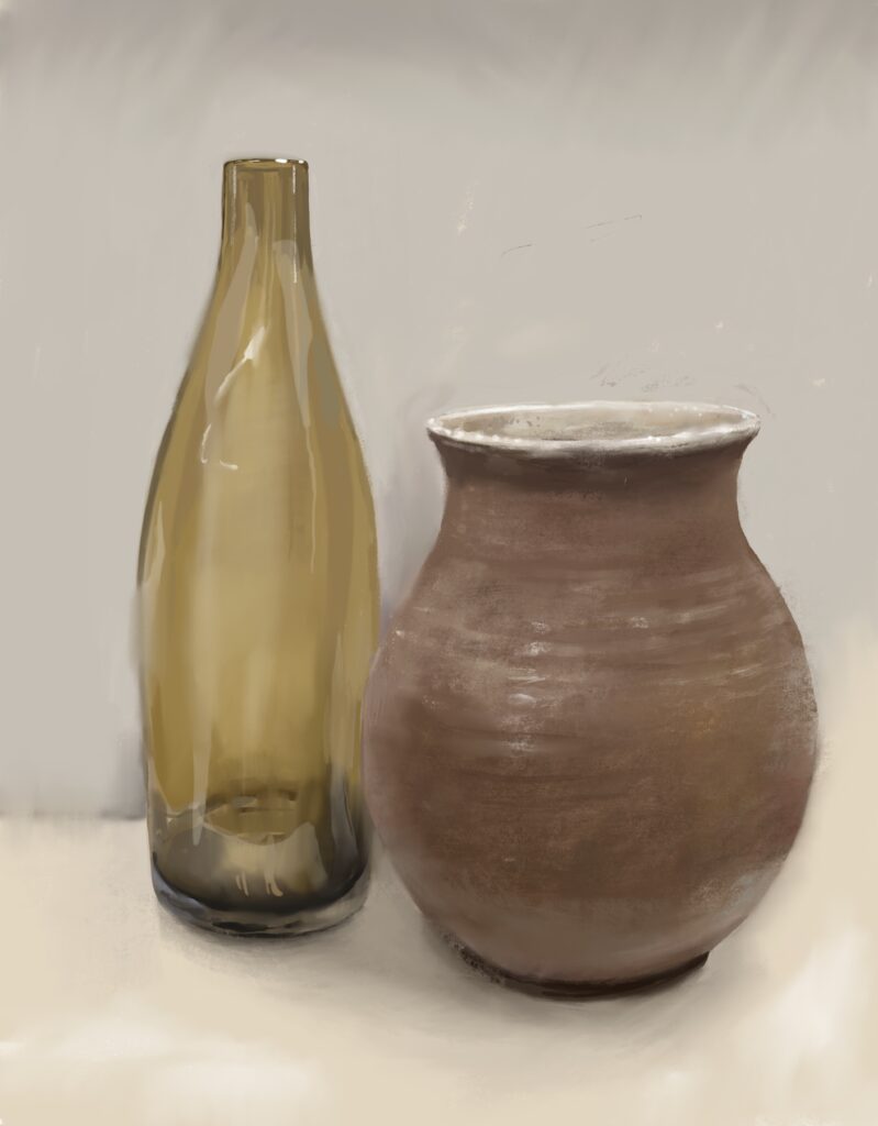 In dieser Studie präsentiere ich verschiedene digitale Illustrationen von Vasen und Gefäßen. Mein Augenmerk liegt auf der detaillierten Darstellung von Oberflächenstrukturen, Verzierungen und Materialtexturen, beispielsweise Ton, Glas und Metall. Besonders wichtig ist mir neben der Präzision der Details auch die realistische Wirkung der Stillleben.